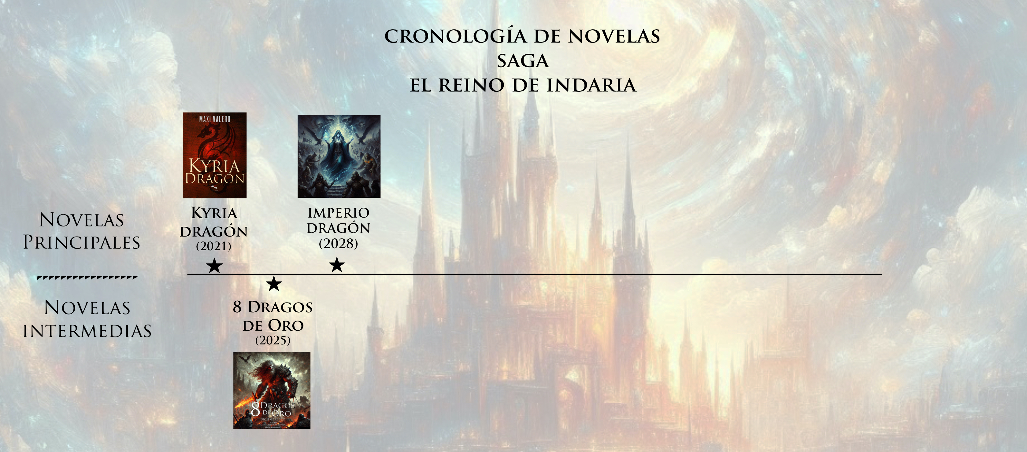 Cronología de Libros Esta es la cronología de libros por ahora anunciada y oficial. La saga constará de, al menos, cinco novelas principales y cinco intermedias. Pincha en la imagen para ampliar